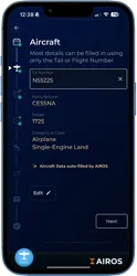 A: Yes, AIROS uses both public and private data sources (including ADS-B and FAA data) to accurately auto-fill specific flight information.